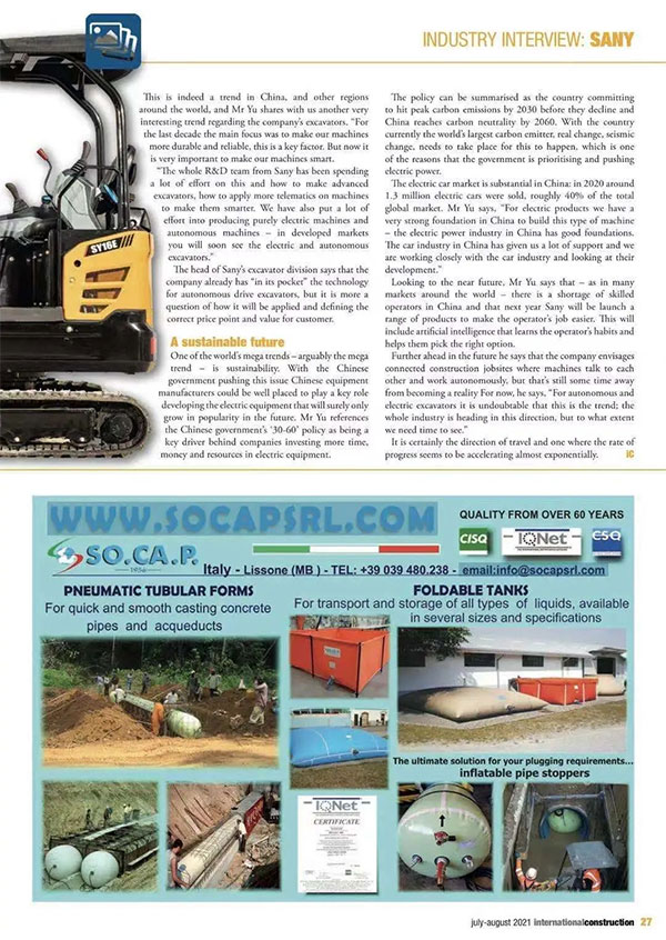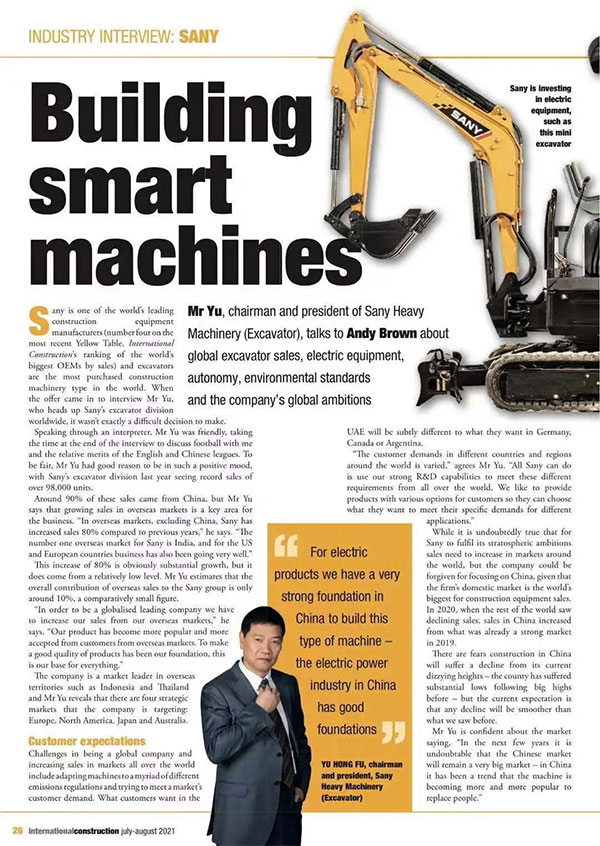 近日,KHL《国际建造》杂志刊发三一重机董事长俞宏福专访报道《三一重机迈向可持续发展》。文中,俞宏福与KHL记者针对三一全球挖掘机销售、设备电动化、自动驾驶以及国际化战略展开深入探讨。
