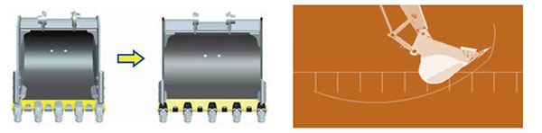 高效率:铲斗升级,配置同吨位 级最大斗容1.36m³岩石斗/1.55米³土方斗,更易于挖掘装车,作业效率大幅提升;