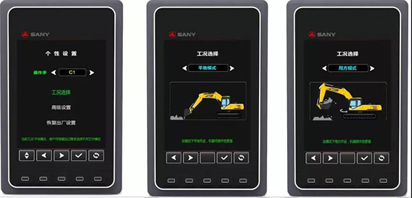 SY205DPC在“高效节油”的基础上,全新推出了客户自定义模式——你可自由调节各类个性化设置,还有汽车“驾驶座位置记忆”功能,可进行动作速度调整并记忆,支持3组自定义模式,满足不同操作手和工况的需求,真正做到操作习惯的私人“定”制。
