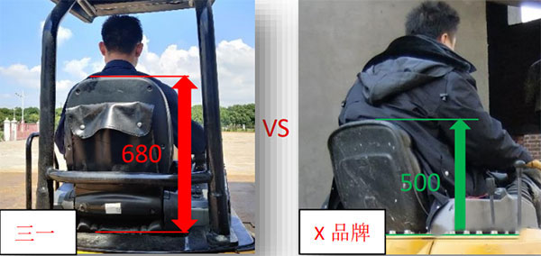 配置 680mm 高靠背座椅 (比竞品高 36%),前后 可调节,,操作员驾驶更 舒适。