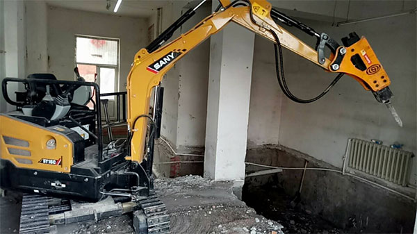城市建设还少不了道路修复、破碎等工况,所以三一微挖还可以配装多种装置属具,挖、抓、卸、破碎都能搞定。