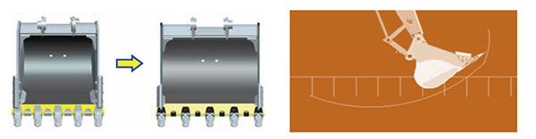 • 高效率:铲斗升级,配置同吨位级最大斗容1.36m³岩石斗/1.55米³土方斗,更易于挖掘装车,作业效率大幅提升;