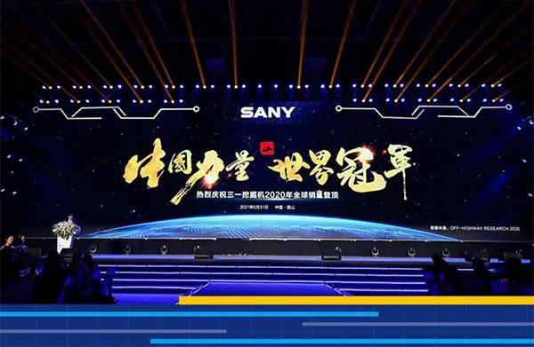 5月31日,中国昆山,“中国力量 世界冠军”三一挖掘机全球销量登顶庆功晚会隆重举行。根据全球权威调研机构Off-Highway Research数据,2020年,三一共销售98705台挖掘机,占据全球挖掘机市场15%的份额,首夺全球销冠!