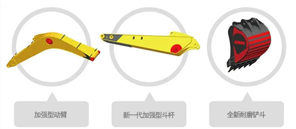 新一代加强型斗杆:采用久经考验的箱式焊接结构,抗弯截面系数增大14%,平均应力下降10%以上,有效的提高在恶劣工况下的耐久性。