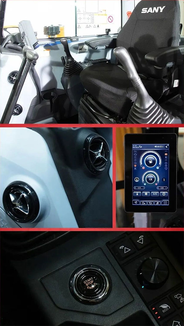 两点吧,一点是通过销售人员的介绍,还一个是我自己的第一感觉,经过改装(升级)以后,我觉得操作手能更好发挥自己的特长,比方说改过以后有这个挡阳光的,还有就是把这个电脑升级了一下,整个驾驶室里的感觉呢,的确是很舒服的,我觉得这款比老款还要好一点。