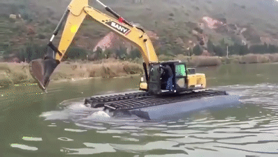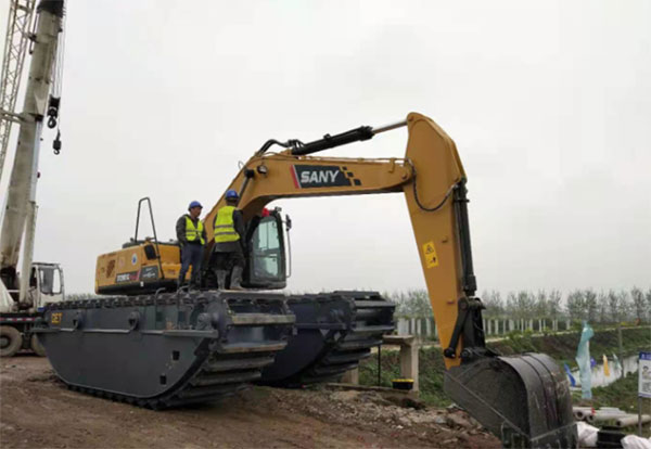 ①采用浮筒式下部行走、接地比压小,能够在湿地、沼泽等超松软地带作业。