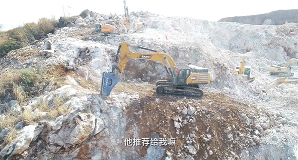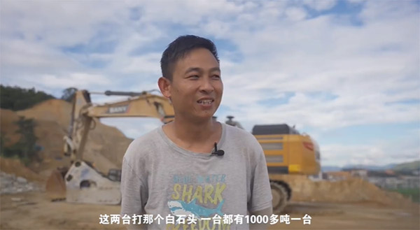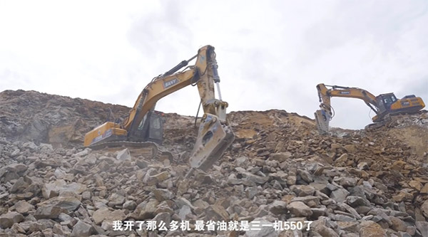 “平时用SY550HB主要是打硬石头,像是风化岩、花岗岩、白石头比较多。现在打白石头一天都有1000多吨一台。操作杆好开,力度也可以,三一各个方面都挺不错的。”