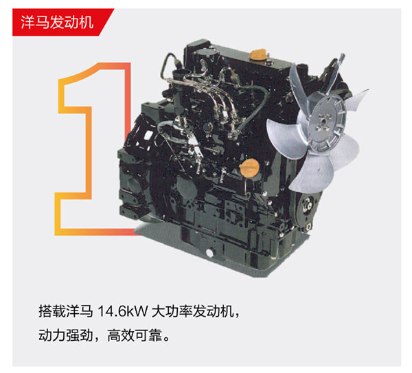 该机型整机重量1910kg,标准斗容0.04m³,可提供两种动力解决方案,均满足国四排放标准,动力强劲,可靠耐用,满足您的多元化动力需求。