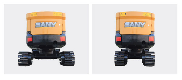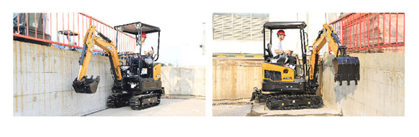 SY16C配备可偏转装置,范围为:左偏595mm,右偏350mm,两边都能轻松挖到履带外边缘,可在墙角等空间限制位置作业。