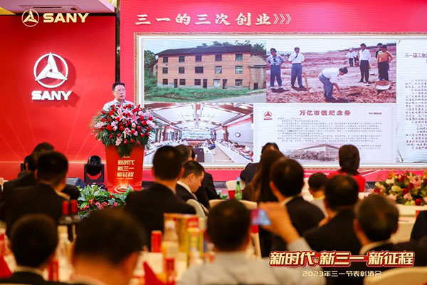 当晚,梁稳根还谈到了三一波澜壮阔的三次创业。1986年,梁稳根带领创业团队,成立了涟源茅塘焊接材料厂,也就是三一集团前身,将焊接材料做到市场第一,深刻践行“做改革开放试验田”的梦想;1994年,三一开始第二次创业,从涟源到长沙,从特种材料到装备制造,三一重工完成股权改革,驰援智利与福岛,收购普迈,成为全球建机三强,用极高的产品品质改变了中国制造的世界形象,取得了“品质改变世界”的伟大成就。