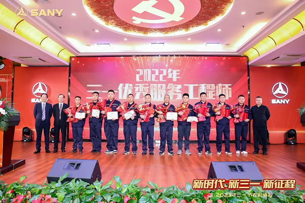 伴着经久不息的掌声,梁稳根等向胸戴大红花的先进个人颁发奖章和证书。31位“三一人物”和31位“优秀服务工程师”先后上台,受到公司最高规格的褒奖。