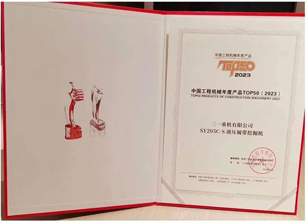 国四版SY205C更是全面升级,强动力、低油耗,凭借过硬的市场表现,斩获了2023年中国工程机械年度产品TOP50产品奖。