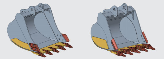 标配土方铲斗,可选配岩石铲斗,实现“一况一斗”,满足不同工况作业需求。优化铲斗斗型,增加物料贯入流畅性,降低摩擦。前刃板与支座底板夹角增大,提升满斗率。挖掘过程平均阻力降低,挖掘效率升高。