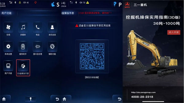 使用者只需手机微信扫描二维码即可进入操作保养手册界面,显示屏内已提前为各位准备了二维码。