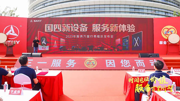 5月20日,三一重机2023年服务万里行全球出征仪式在昆山产业园如火如荼地举行。