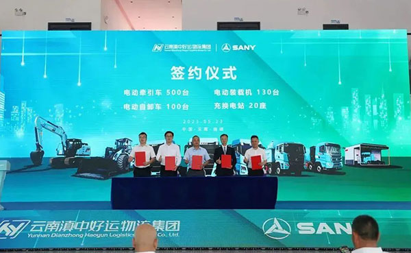 近日,滇中好运物流集团&三一集团电动化产品交付暨500台电动牵引车签约仪式在云南曲靖隆重举行,现场达成近6亿元、750台新能源设备采购协议,是西南地区最大规模电动化物流交付及订购项目。