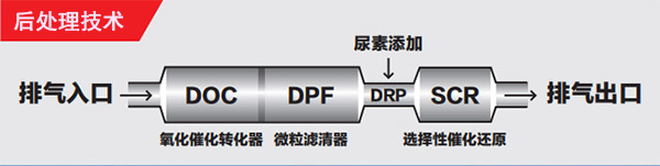 采用DOC+DPF+SCR后处理技术,尿素管路采用电加热方式,油耗降低,排放清洁,更加环保,为客户带来真正的实惠。