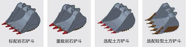 可配置4种系列化铲斗,满足“一况一斗”,提高施工效率,轻松应对多种复杂工况,提升产品价值及客户盈利能力。
