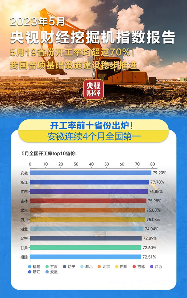 挖掘机是基础设施建设的“标配”,是反映基础设施建设、观察固定资产投资等经济变化的风向标。央视财经与三一重工、树根互联联合打造的“央视财经挖掘机指数”发布了最新相关数据。5月份,我国多地积极推动重大项目开工建设,各项基础设施建设延续稳健复苏,为经济运行持续好转注入强劲动力。