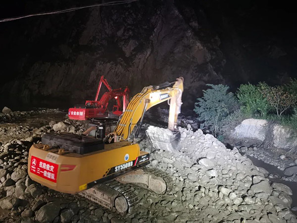 抢险现场,三一重机代理商四川盛和联合客户中国安能第一时间迅速组成救援队伍奔赴受灾现场,派遣近20台三一设备及操作手24小时参与援救。三一服务工程师现场待命,保障机器维护抢修工作,确保机器正常运行,抢抓救援时间,尽最大努力保护灾区人员安全与整治灾难隐患。