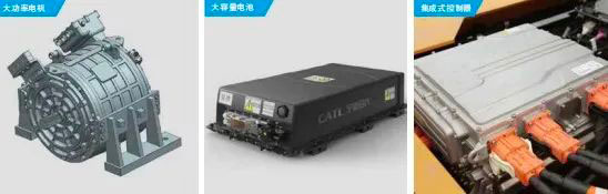 集成式控制器:配置定制的多合一集成控制器,采用高度电路集成方式,实现电驱MCU功能,三相交流充电OBC功能,低压供电DC/DC功能,整车控制VCU功能,同时具备上电预充附属功能,体积小,集成度高。