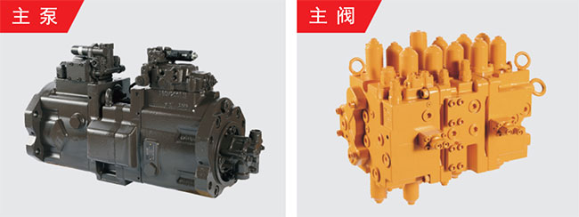 液压系统:主泵排量由160cc升级180cc,整体动作更快。大通径主阀,流通能力大,压损降低,能效提升。