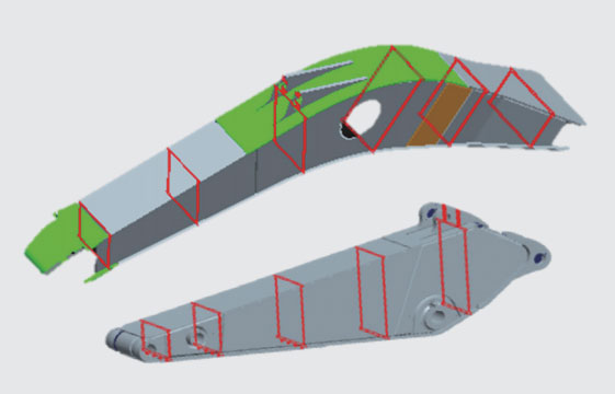 动臂、斗杆升级:全面应用2万小时工作装置技术,保证工作装置可靠性高、寿命更长。动臂斗杆加宽,截面系数增加超10%,寿命提升。优化焊接工艺,单面焊双面成型,TIG焊趾修熔等工艺,消除应力集中。强化局部高应力部位,平均应力下降10%以上。