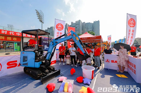 电动微挖SY19E“撑场子”的挖机游戏区,更是吸引了众多机友们前来试驾挑战,在热烈激情的音浪中嗨翻全场、人气爆棚。