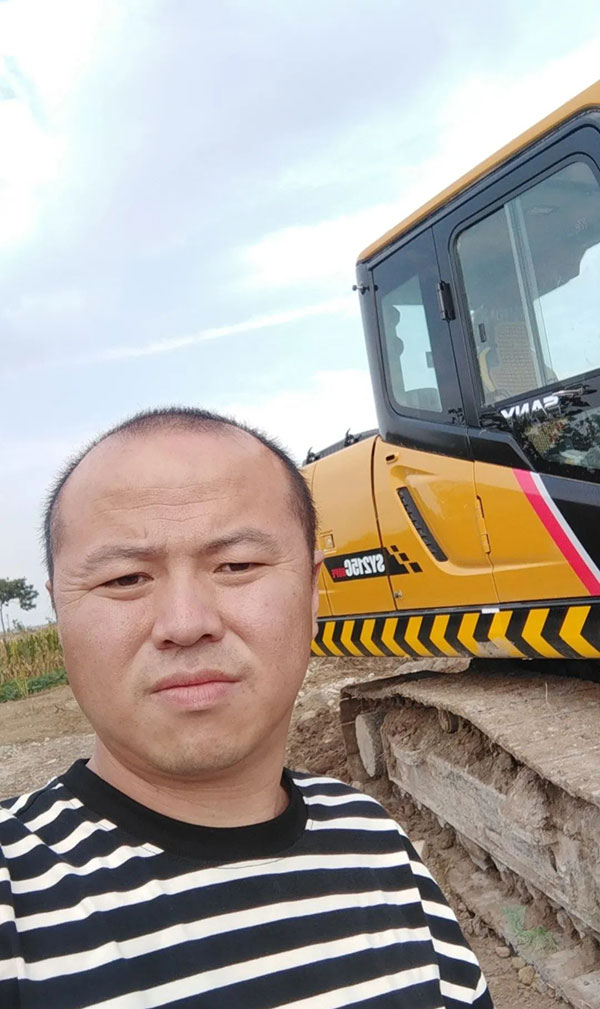 我叫蒋磊,是来自蚌埠固镇的三一老用户。2008年开始接触挖机,当时用的只能旋转180度的不知名皮轮挖机,2010年开始接触三一,说实话没什么感觉,在销售人员的软磨硬泡下,购买了第一台三一SY75挖机,使用还不错。印象最深的是售后服务,有一次油缸坏了,服务连续工作了一天一夜的时间,不讲累,不讲苦,就怕耽误时间。