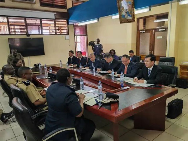 9月12日下午,王一鸥与马拉维警察总监约拉姆会晤交流