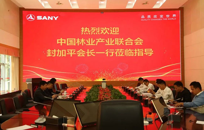 贺鑫先生向中国林业产业联合会常务副会长封加平先生一行的来访表示衷心的感谢与欢迎,并向来宾们介绍了三一重机的发展情况。他指出目前三一重机在助力林业产业经济发展小有突破。三一将携手林业行业协会加快研发林业多种工作场景下的定制化设备,实现林业产业上下游国产设备的成套化。