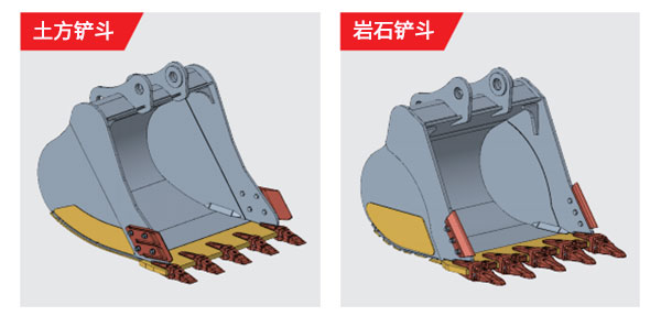 标配土方铲斗,可选配岩石铲斗,实现“一况一斗”,满足不同工况作业需求。优化铲斗斗型,增加物料贯入流畅性,降低摩擦。前刃板与支座底板夹角增大,提升满斗率。挖掘过程平均阻力降低,挖掘效率升高。