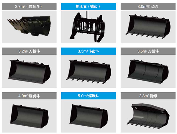一况一斗:三一 SW956E 电动轮式装载机可配置 3.1m、3.4m、3.6 m 三种臂。依据客户实际工况的不同,提供多种专用铲斗供选择。标配 3.5m3 刀板斗,可配置 9 种系列化铲斗,满足“ 一况一斗 ”,提高施工效率,轻松应对多种复杂工况,提升产品价值。