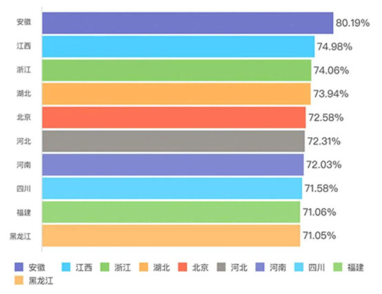 从全国来看,共有12个省份开工率超过70%。其中,安徽、江西、浙江分别以80.19%、74.98%、74.06%,位列全国前三。今年上半年,安徽曾连续5个月开工率全国第一。