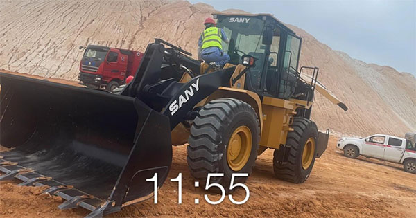 广西百色铲装砂石料:每日工作8h以上,客户对油耗、效率、力量满意,装载大密度物料湿砂时,仍作业有力。