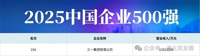 9月15日,中国企业联合会、中国企业家协会联合发布 “2025中国企业500强” 榜单。三一集团荣列第216位,稳居工程机械行业第一。