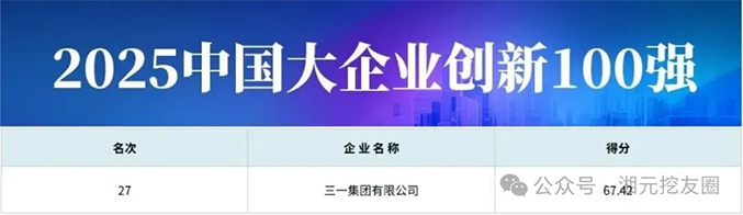 其中,三一在“中国大企业创新100强”和“中国跨国公司100大”中分列第27位和第42位,为行业最高排名。