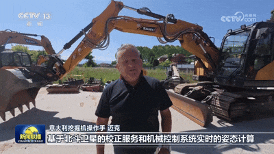 意大利挖掘机操作手 迈克:基于北斗卫星的校正服务和机械控制系统实时的姿态计算,我可以将铲斗定位精度控制在3厘米以内。