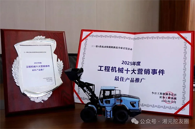 2025年10月22日,“2025 年度工程机械十大营销事件” 重磅发布。“三一第5代电动装载机新品全球首发活动” 成功荣登 “2025 年度工程机械最佳产品推广事件”。